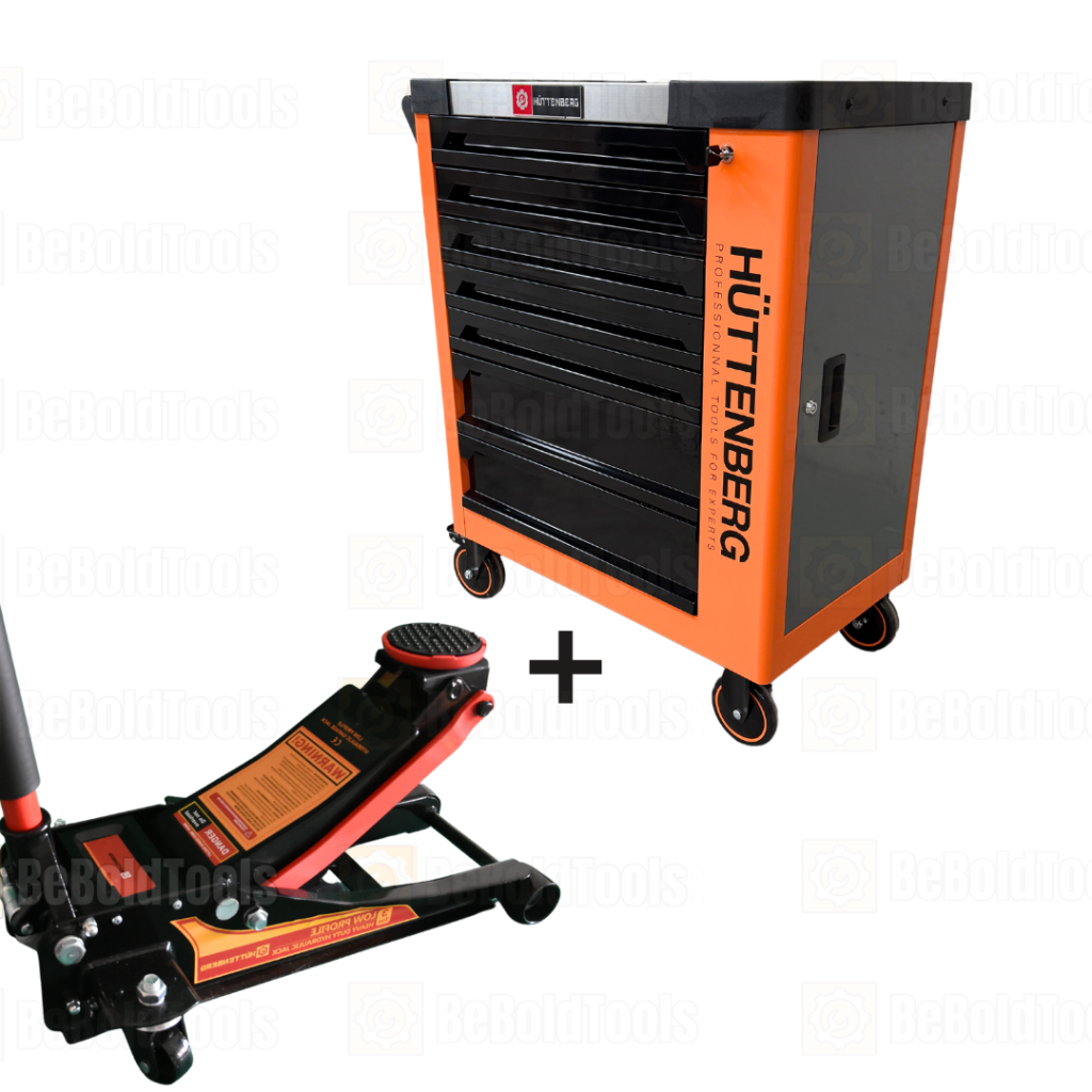 Carro de taller de 7 cajones con herramientas sólidas + gato hidráulico de 3 toneladas (paquete profesional)